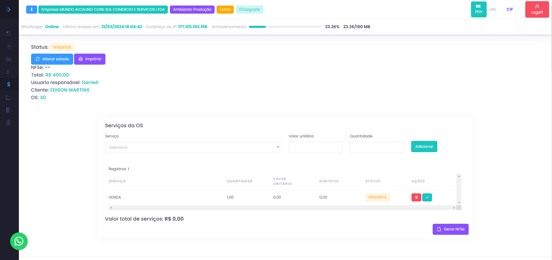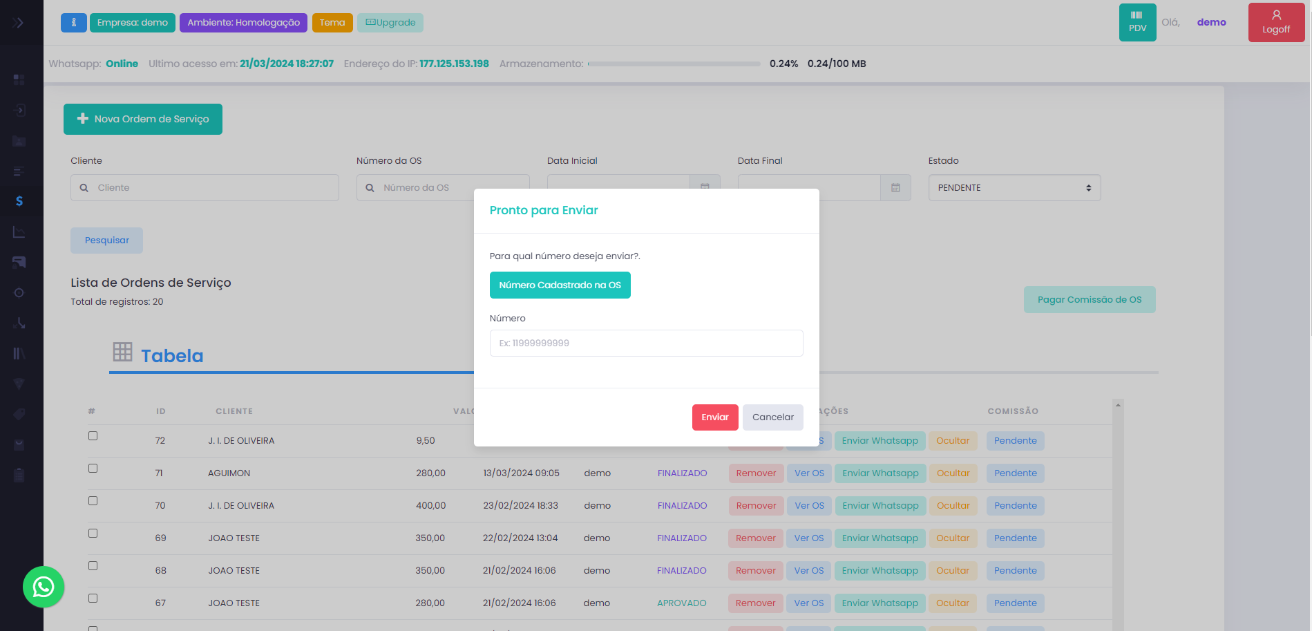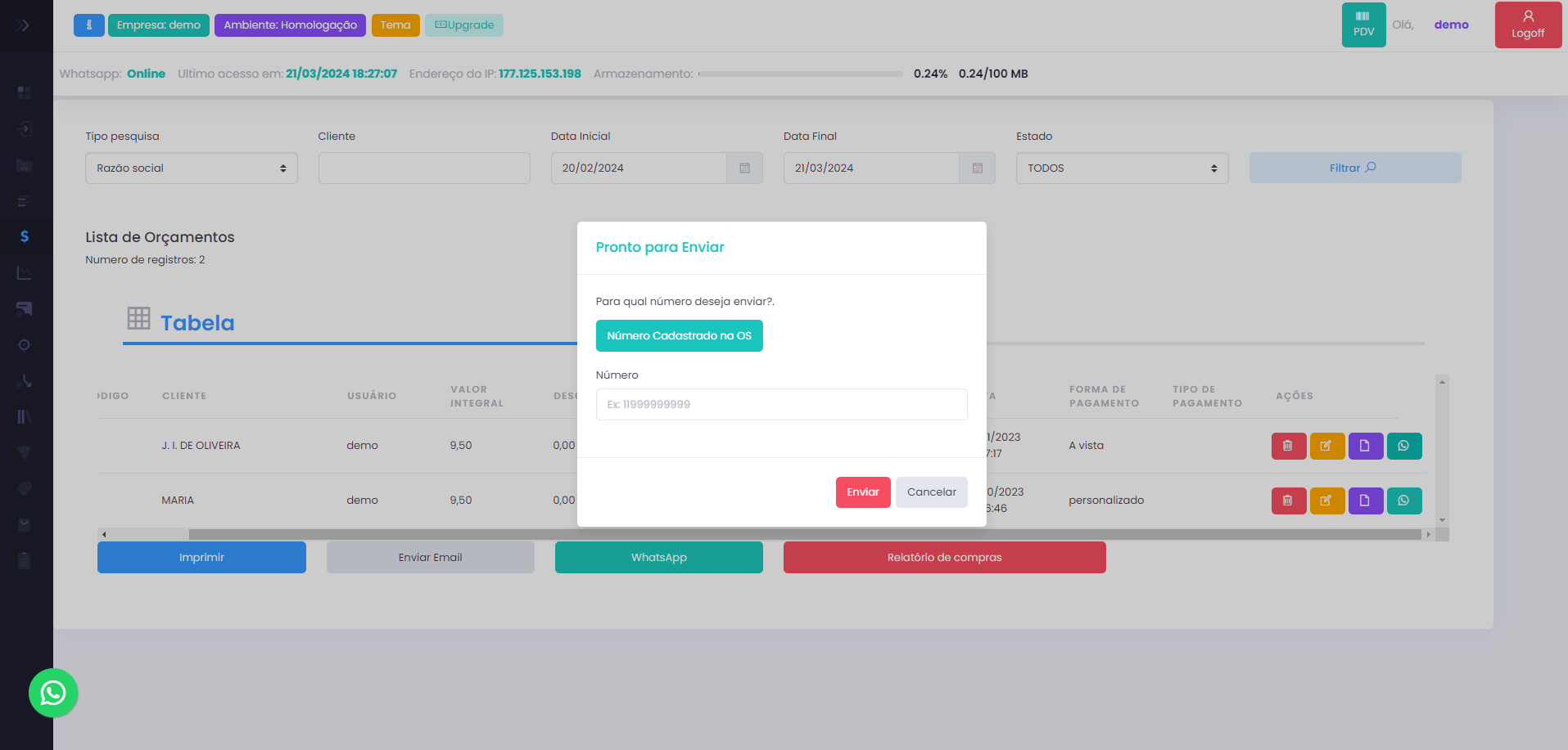 Envio de Orçamentos, Vendas e ordem de serviço pelo WhatsApp