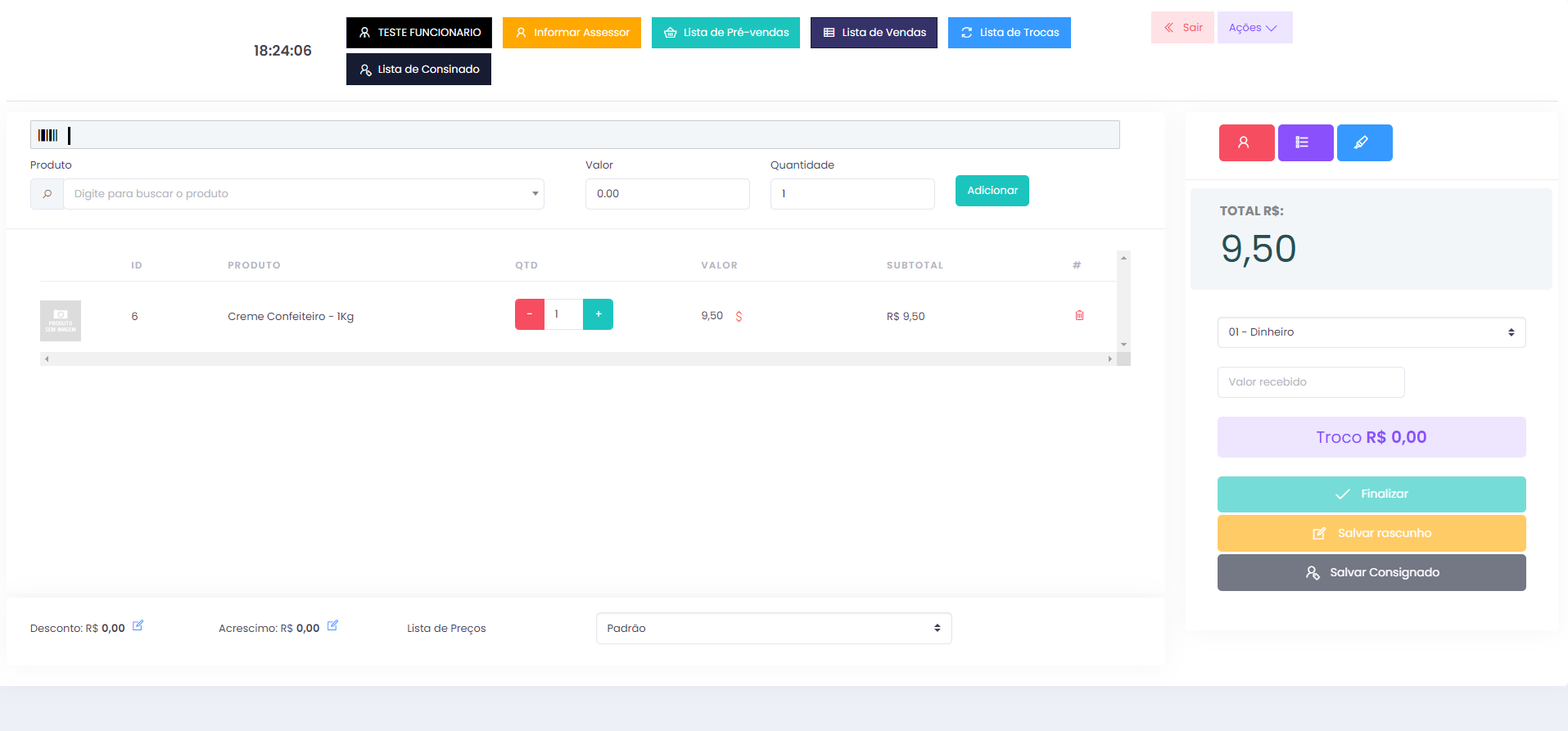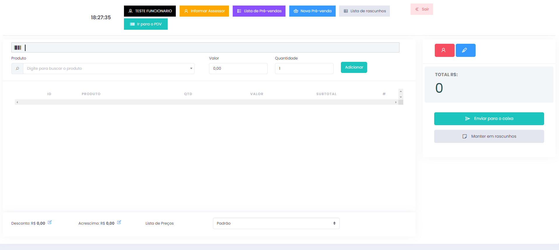 Controle de Vendas e Caixa: