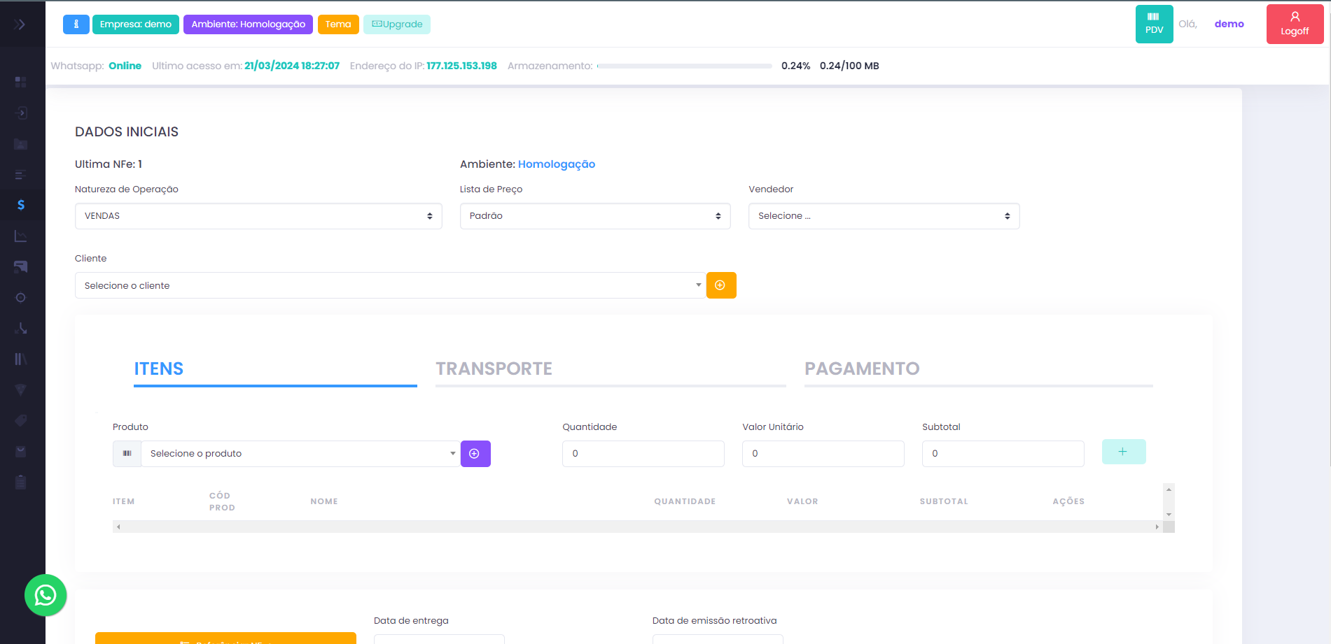 Vendas e Emissão de NFe
